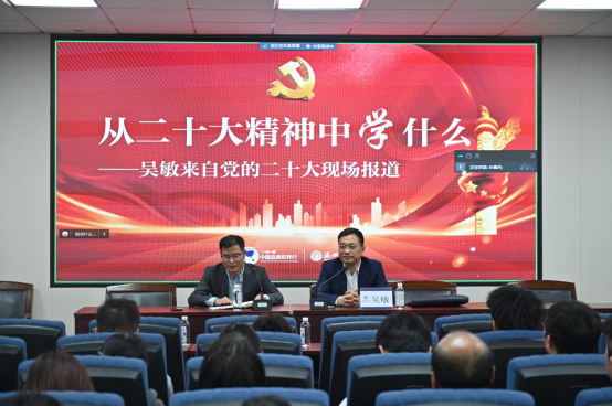 吴敏老师就全面掌握党的二十大报告的主要内容、核心要义进行了阐述,引导老师们深刻领会党的二十大报告的内涵。他从新闻报道、权威解读、核心内容三个方面全方位地解读了党的二十大的各项议程。他通过分享二十大新闻中心的对外接待服务等现场照片展示会议即“严格、严密、严谨”又“温馨、温和、温暖”。他强调,要领会会议蕴含的重要思想、重要观点、重大战略、重大举措,要增强政治认同、思想认同、理论认同、情感认同。他提出,要深入落实立德树人的根本任务,思考永利集团官网的老师要在党的二十大中学什么、做什么、怎么做好三个深刻问题。