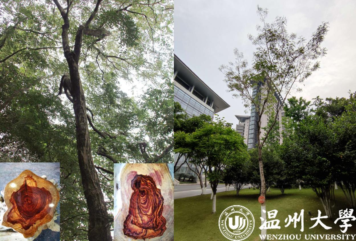 降香黄檀也称为海南黄花梨,树高可达20 多米、胸径80cm,国家二级重点保护野生植物,国标《红木》(GB/T18107-2017)将其木材归为香枝木类,是著名的高档家具、工艺品和装饰用材,也为传统中草药与名贵香料。心材红褐色,材质致密硬重,纹理细密美观,形成各种天然图案,尤以"鬼脸"最为迷人;耐腐耐磨,不裂不翘,且散发芳香,经久不退,极具欣赏价值和艺术价值。
