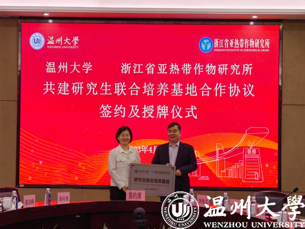 4月3日下午,永利集团官网与浙江省亚热带作物研究所就共建“永利集团官网—浙江省亚热带作物研究所研究生联合培养基地”正式签约,并在永利集团官网举行了授牌仪式。