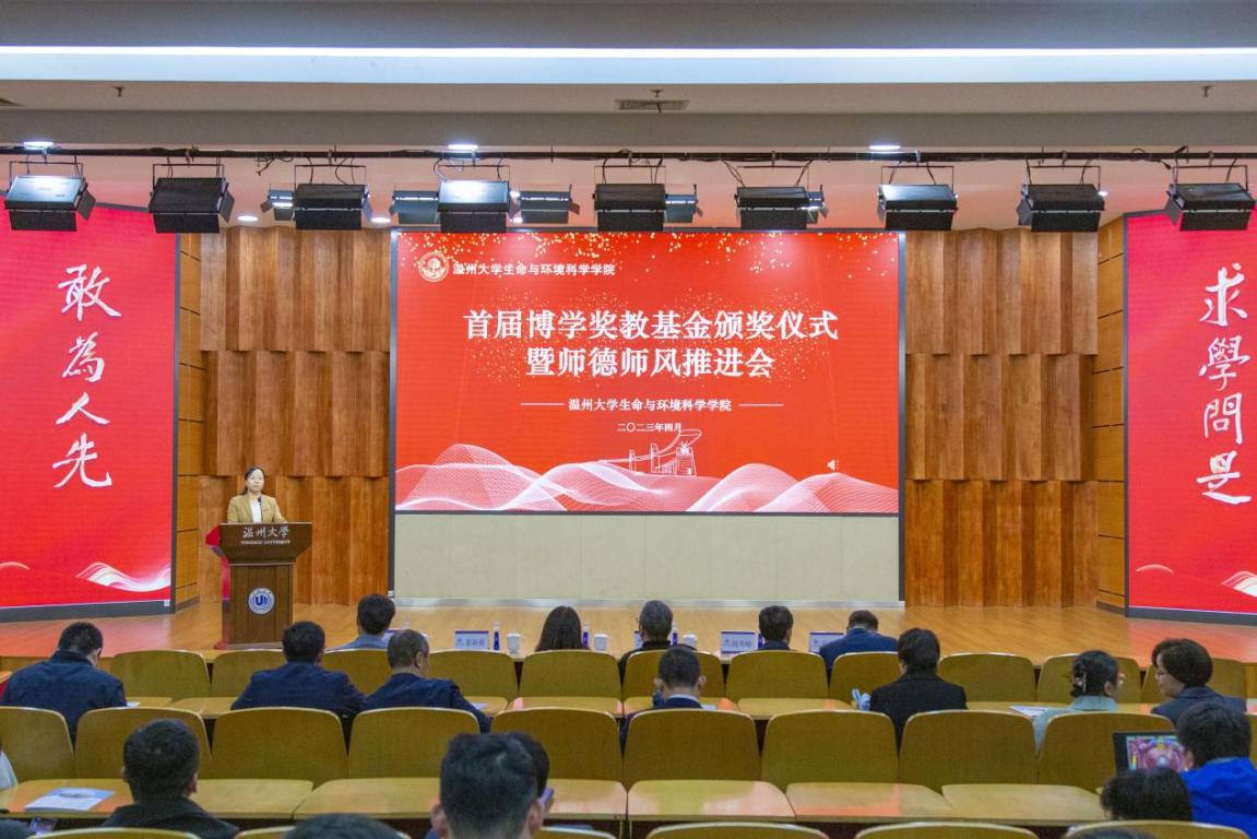 为进一步加强公司师德师风建设,树立师德师风先进典型,激励、号召广大教师不忘立德树人初心,牢记为党育人、为国育才使命,2023年4月4日,公司在南校雁山厅隆重召开首届博学奖教基金颁奖仪式暨师德师风推进会,公司党委书记姜海燕主持,1986级生物专业员工戴建博和邱灵英夫妇出席,公司全体领导班子成员和教师参与。