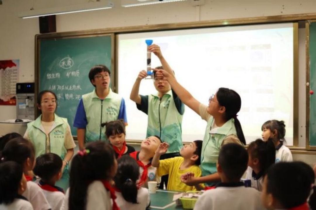 在知识科普方面,“文达清源”暑期社会实践队分别在永利集团官网附属茶山实验小学和仙溪镇第一小学以“河道保卫战”贯穿五水共治政策,配合着净水小实验的展开,传递给孩子们“一点一滴,加倍珍惜”的水资源理念,让节水意识深入孩子的内心,渗入他们的生活之中。