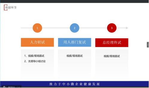 接着,负责人就各个校招岗位,对其在薪资、岗位职责、任职要求等方面做了详细介绍和深入解释。校招环节包括人力初试、用人部门复试、总经理终试,对毕业生的能力提出综合要求。