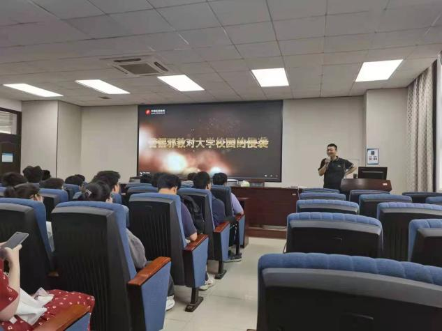居安思危,思则有备,有备无患。为提高公司师生防范邪教意识和能力,公司开展了“反邪教警示教育进校园”专题教育活动。4月15日早上十点,21环工全体同学在公司辅导员陆海鹏老师指导下于10B202开展了线下的主题教育活动。其余各班由各班安全委员组织观看“警惕邪教对大公司园的侵袭”的反邪教警示教育视频,引导公司学子正确识别邪教,抵制邪教,远离邪教。