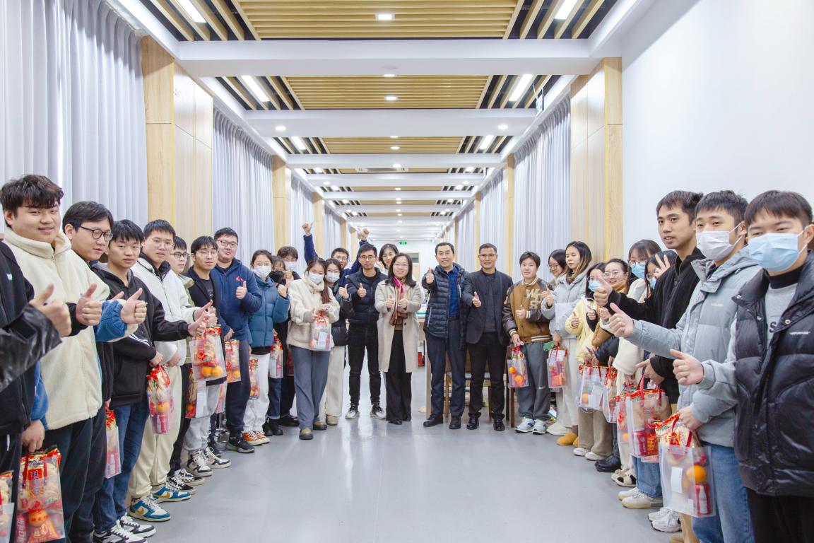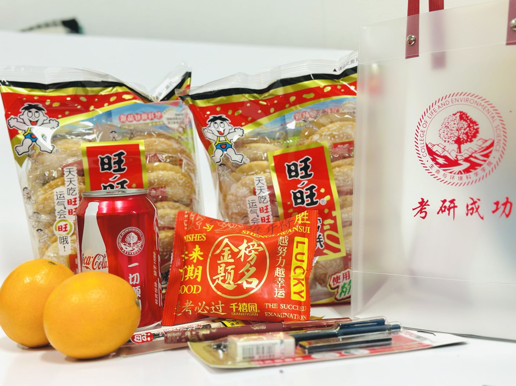同时,老师们还为考研学子发放了公司特别定制的“考研大礼包”,内有公司精心准备得水果、零食和考试文具套装:“一切都要‘旺’”的旺旺雪饼,标有“金榜题名”、“一切顺利”的可口可乐,还有寓意着“心想事成(橙)”的鲜橙。物虽常见,却意蕴丰富,承载了公司对考研学子们马到成功、金榜题名的真挚祝福。
