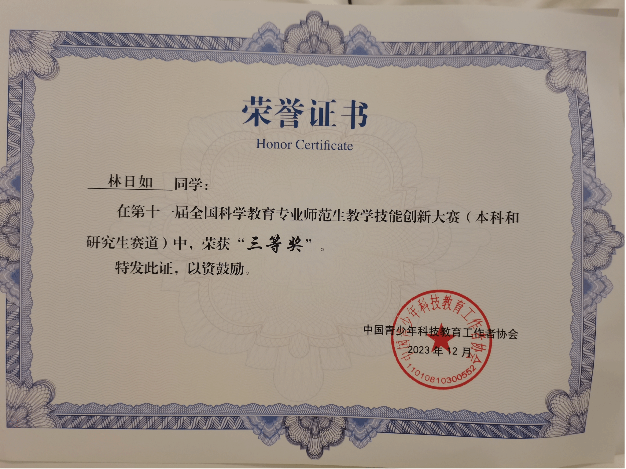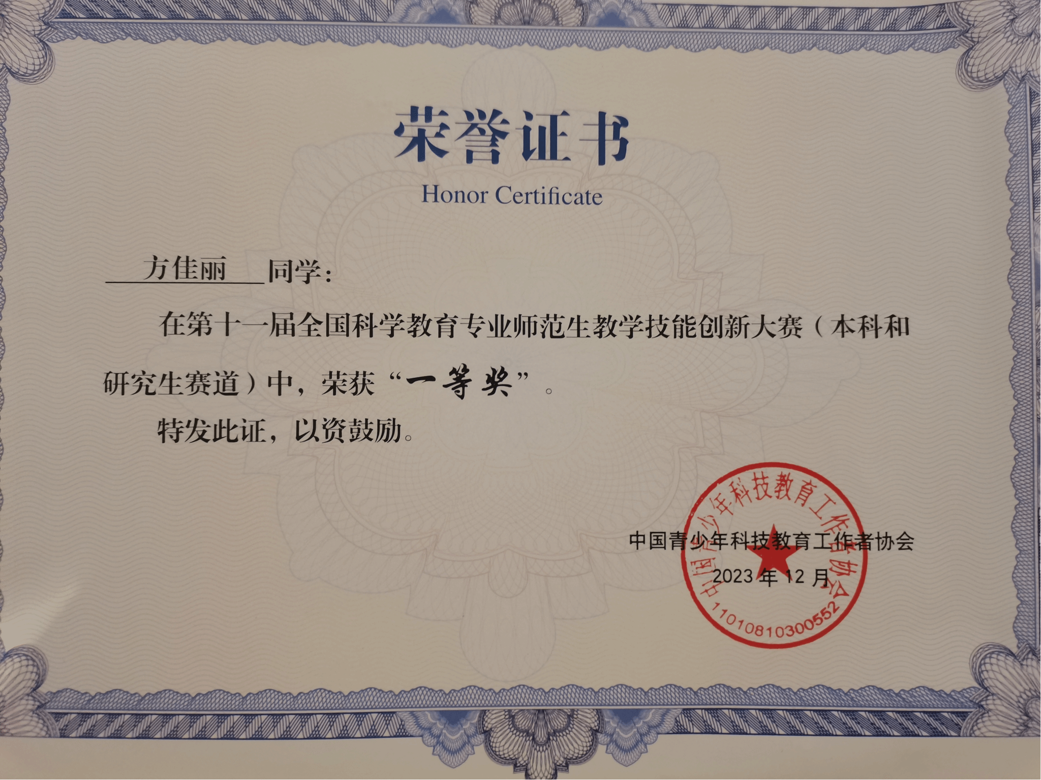 2023年12月1日-12月3日,第十一届全国科学教育专业师范生教学技能创新大赛决赛在四川省南充市西华师范大学举行。经过激烈的初赛筛选,公司学子方佳丽、林日如同学成功晋级决赛,最终方佳丽同学荣获一等奖,林日如同学荣获三等奖。
