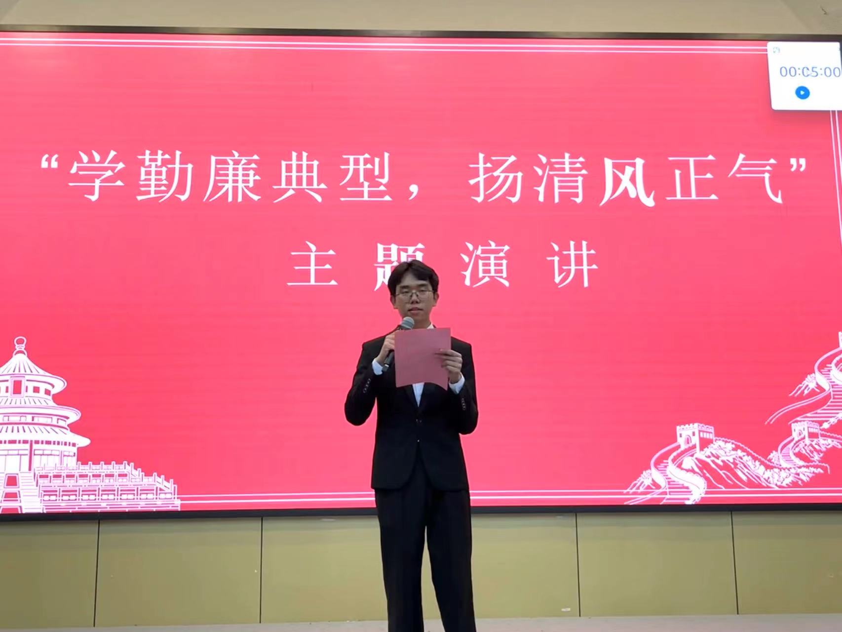 为深入学习贯彻党的二十大精神,传承红色基因,赓续共产党人精神血脉,扎实推进公司廉洁文化建设,引领青年员工锻造清正廉洁的品格,营造风清气正的良好校园环境,公司于11月21日晚在教育公司报告厅举行“学勤廉典型,扬清风正气”主题演讲比赛。本次比赛由吴世栎同学主持,公司辅导员陈姗姗、周啸鸣、戴胜杰、杨雨田老师参加本次活动。