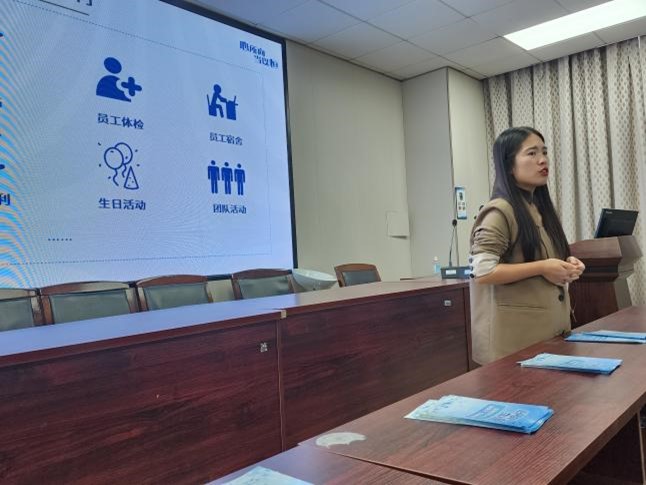 与员工们的问答环节结束后,HR开始介绍恒瑞医药的分层级培养。在企业文化中,分为职场新人、基层职员、一线主管、二线经理、高级管理者。通过努力,员工的思维转换,建立基本工作素养、管理能力和领导力、战略思考能力,进而在体系内得到晋升。之后,为了满足员工们对于薪酬福利的期待,HR依次介绍了药企的五险一金、差旅补贴、员工体验、员工宿舍、带薪假期、节日福利、生日活动、团队活动等等。其中,员工的宿舍和食堂的环境都是相当好,温馨宜人且格调优美。