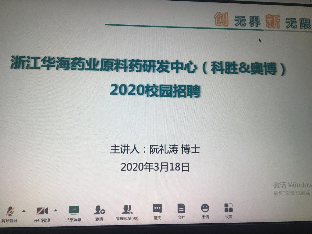 疫情期间,为实现校企无缝链接,深入推动公司毕业生实习就业工作,克服不能线下开展招聘会的困难,3月18日晚上,公司邀请了华海药业研发中心(上海)为公司100多名员工开展空中宣讲会。