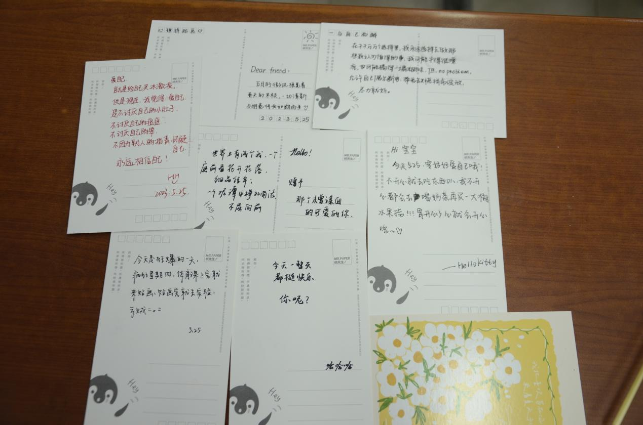 活动现场,工作人员特地准备了心情盲盒,让所有参赛的员工都有机会与其他同学分享自己此时此刻的心情。大家踊跃参与,将自己的心情写在明信片上,并与他人随机交换。一张张明信片传递一个个心情,在无形中打破了交流的隔阂。