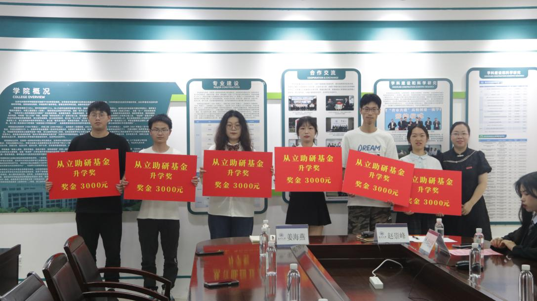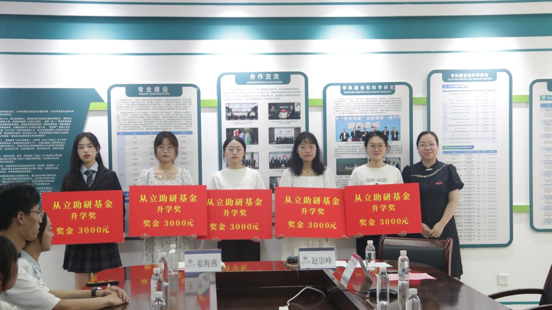 党委副书记赵崇峰介绍了从立助研基金的成立初衷及奖励办法,本项专项助研基金以郑健员工父亲名字命名,并专门用于资助yl永利集团官网登录考上上海高校研究生的学子。随后,姜海燕书记和赵崇峰副书记为获得从立助研基金升学奖的11位学子颁发证书和奖金。