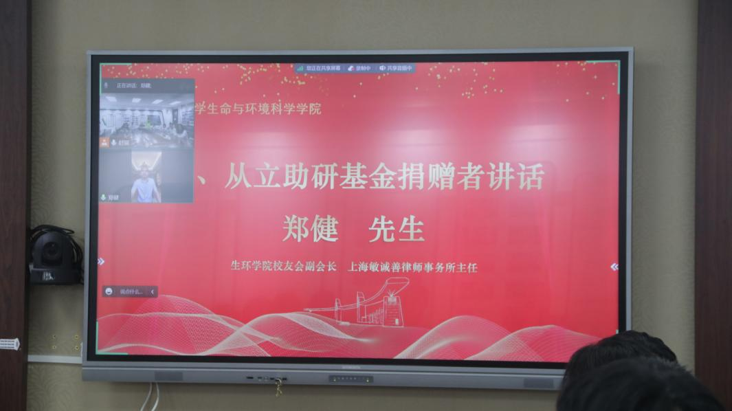 从立助研基金捐赠者89级生物员工郑健先生发表讲话。郑健员工对获得本次助研基金升学奖的11位学子表示祝贺,并分享了自己的人生经历传递珍惜感恩之情。一是激励学子在在校期间把握机会、打好基础;二是鼓励大家结合自身兴趣特长,顺应时代潮流创造璀璨人生;三是希望同学们保持冲劲继续深造,不断夯实武装自己,为社会贡献更大的力量。
