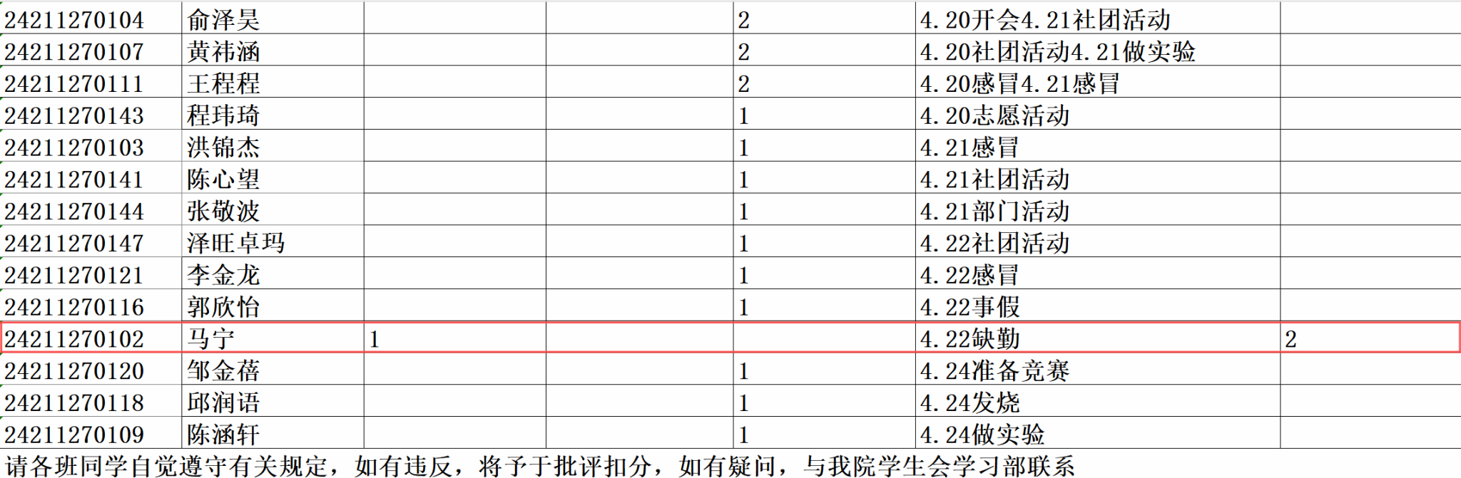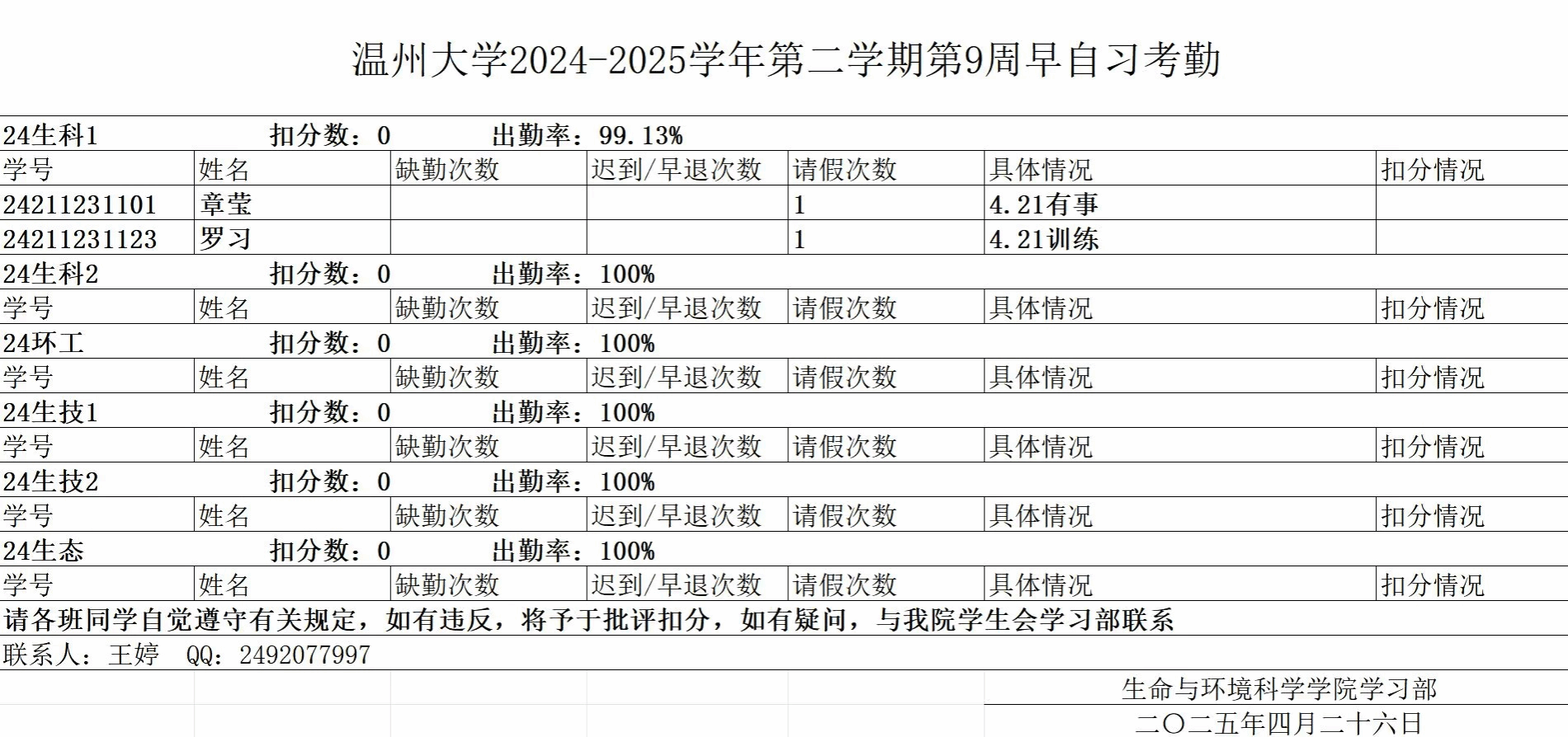 为加强公司学风建设,确保正常的上课秩序,在公司形成良好的院风、班风、学风,不断改善公司学习风气,现将公司早晚自习及课堂考勤情况进行公示。