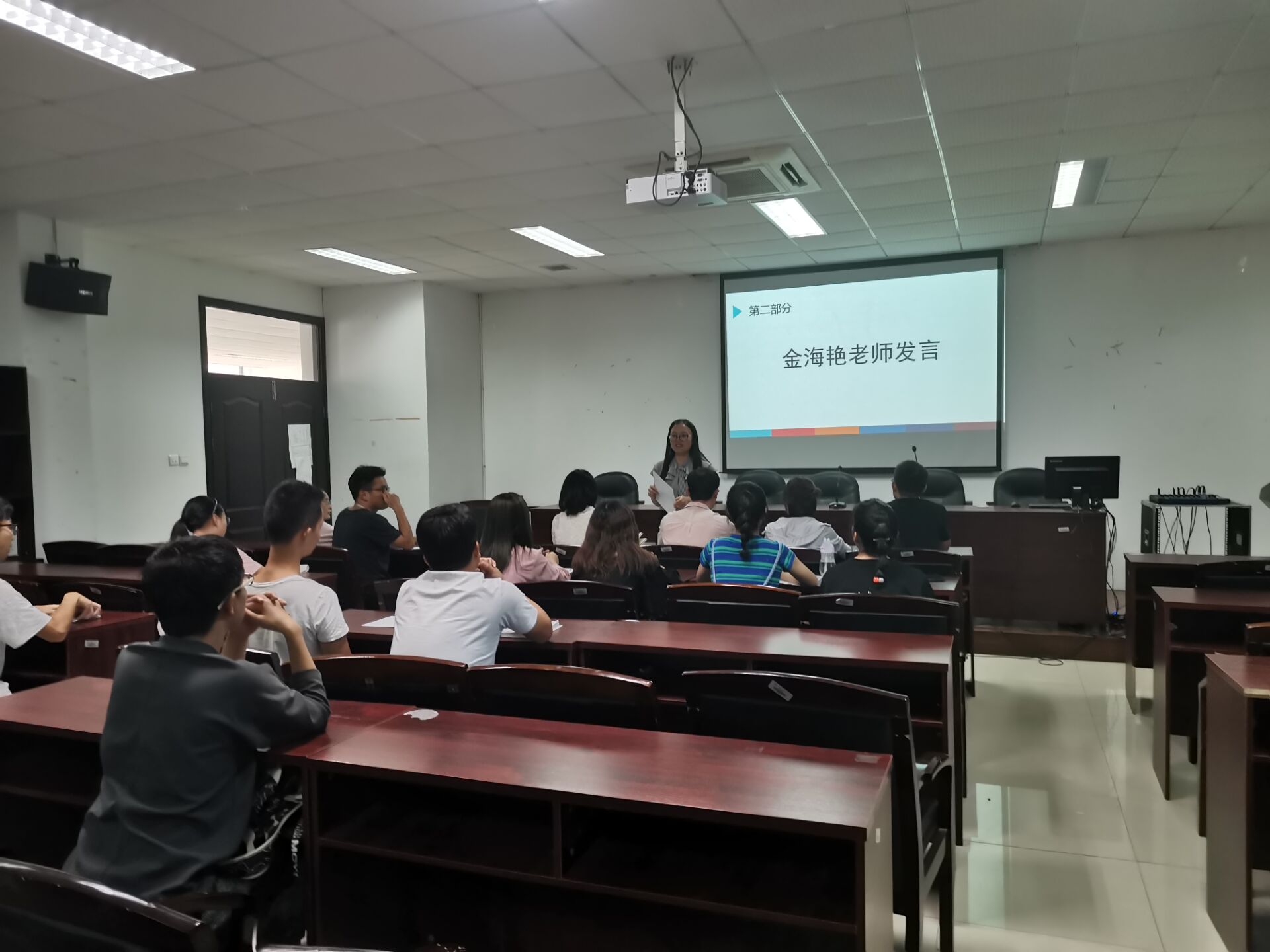 接着,由金海艳老师发表了讲话。老师首先对研会新同学的加入表示了热烈的欢迎,并且介绍了公司研究生的组成,研究生总人数208人,辅导员1人,因此需要在研助和研会干部的共同努力下做好员工工作。金老师强调作为研究生会的成员应该以科研为主,同时适应社会,学会与人相处和人打交道。每一位同学都要立足自身,科学地规划利用时间,在不同的岗位上锻炼自己的能力、不断成长形成长远的格局,树立“在其位,谋其职”、“赠人玫瑰,服务同学”的思想理念,不管是在实验室、专业班级还是研会中都要有团队意识。金老师最后还说有任何问题都可以去办公室咨询或者反馈,期待与同学们多沟通交流,并肩作战。