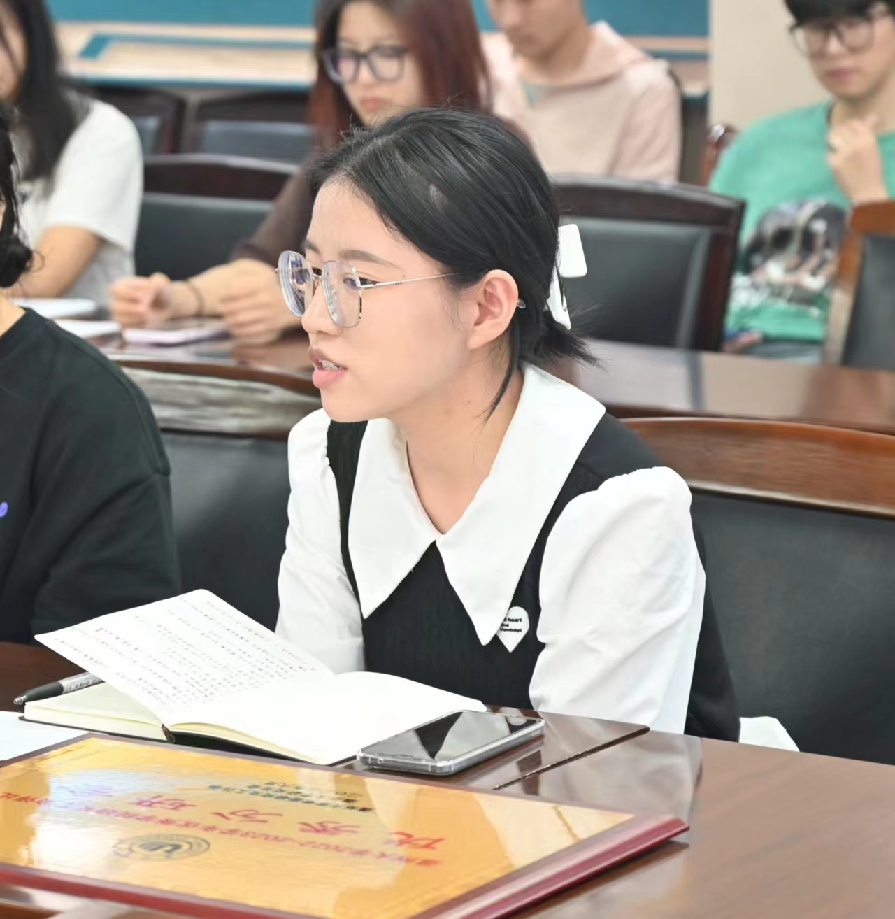 前任研究生会主席王璐宁简短介绍了上一届研究生会的优秀成果,分享了带领研究生会荣获“优秀分研会”荣誉的心得,建议大家做到齐心、细心、创新,衷心希望生环研究生会越来越好。