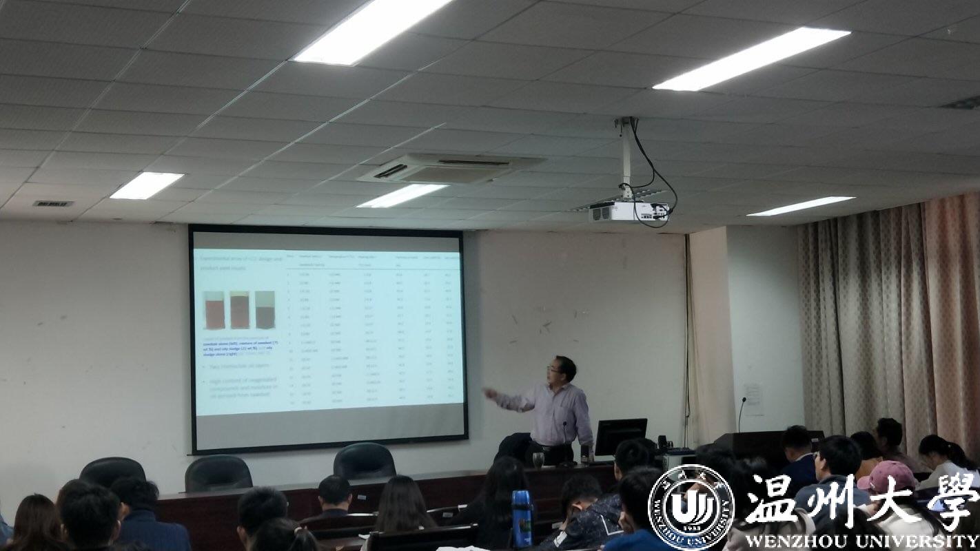 李建兵教授以团队的研究方向石油废物——油泥的处理和修复为主题,围绕近年来在《危险废物》、《清洁生产学报》和《环境管理杂志》等SCI顶级期刊上发表的文献报告了当前油泥的高效处理处置方法。首先,李教授指出油泥是一种油水与固体颗粒混合在一起的乳状液,其中重金属、碳氢化合物含量很高,在很多国家被列为危险废物,利用传统的物理、生物和化学的方法很难降解。随后,李教授就团队针对这些棘手的问题做的一系列研究做了说明:传统的溶剂萃取法与冻融法相结合回收油,通过冻融法处理回收后的油的质量和纯度较传统方法有所提高,剩余残渣中的污染物浓度显著降低。接着,李建兵教授还对实验室最近参与的项目做了介绍,其中一项由加拿大海洋保护计划发起的海上溢油应急响应项目引起了大家的兴趣,该项目旨在开发出可以减少海上运输费用,并可以向政府部门提出科学数据以改变政策法规将处理达标后的水排放进海里的污染处理处置方法。