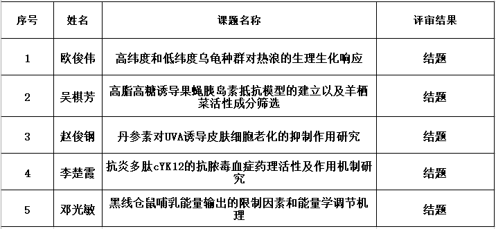 按照永利集团官网《关于2019年度研究生创新基金项目申报的通知》的有关要求和规定,经过公司评审,同意《高纬度和低纬度乌龟种群对热浪的生理生化响应》等5项结题,现将结题项目公示如下: