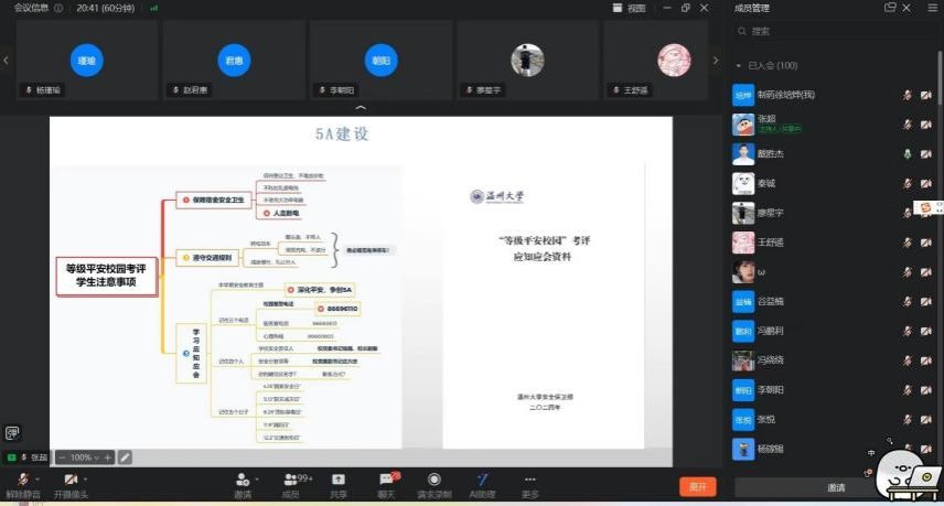 为共建文明寝室,共享和谐生活,使研究生充分了解寝室管理规章制度,感受公司“寝室如家,团结友爱”的良好氛围,12月13日晚yl永利集团官网登录线上召开寝室长大会,会议围绕寝室安全及文明寝室建设标准展开,辅导员戴胜杰及公司全体寝室长参会。