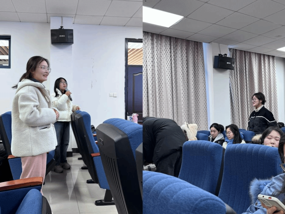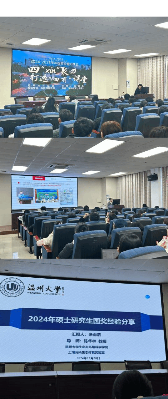 首先进行分享的是22级资源与环境王雯,其研究方向聚焦于水生态修复领域。她以课题入门为切入点阐述了英文论文框架的构建方法,并分享自身在科研历程中的心得体会,同时还为同学们提供了诸多的建议与经验,帮助大家了解获取国家奖学金的途径与要点。第二位是22级学科教学(生物)赵婕。她围绕 “四 xin 聚力” 的理念,致力打造 “四有” 课堂,为师弟师妹提供了教师编制建议与经验,用她满腔的热情鼓励在场同学坚定信念,奋勇追逐各自的梦想。第三位是22级资源与环境张雨洁,研究方向为森林土壤酸化。虽因特殊情况未能到达现场,但他精心录制了视频。在视频中,他围绕科研成果、社会实践以及个人经验等多个方面展开分享,深入探讨科研领域的见解,以及如何将理论知识巧妙运用于社会实践的经验,为同学们在科研之路上持续前行提供灵感。