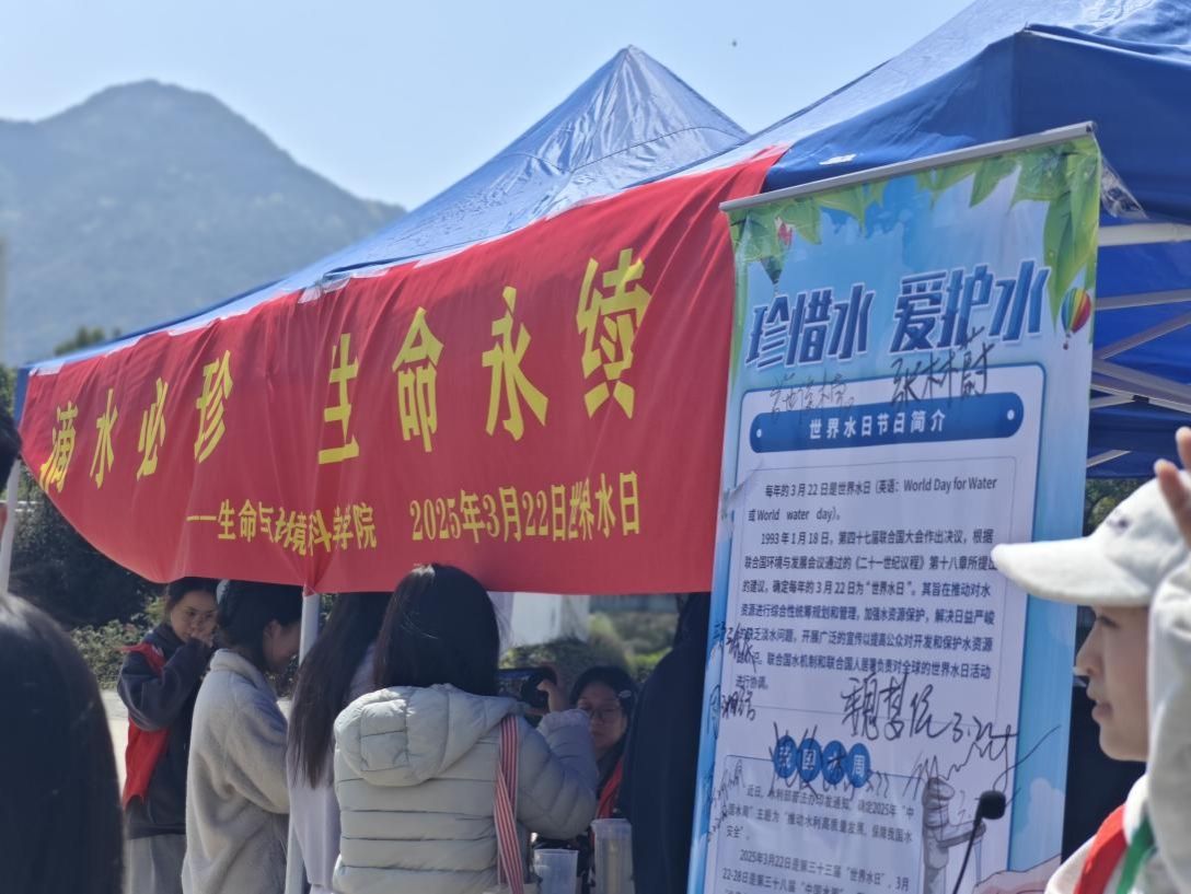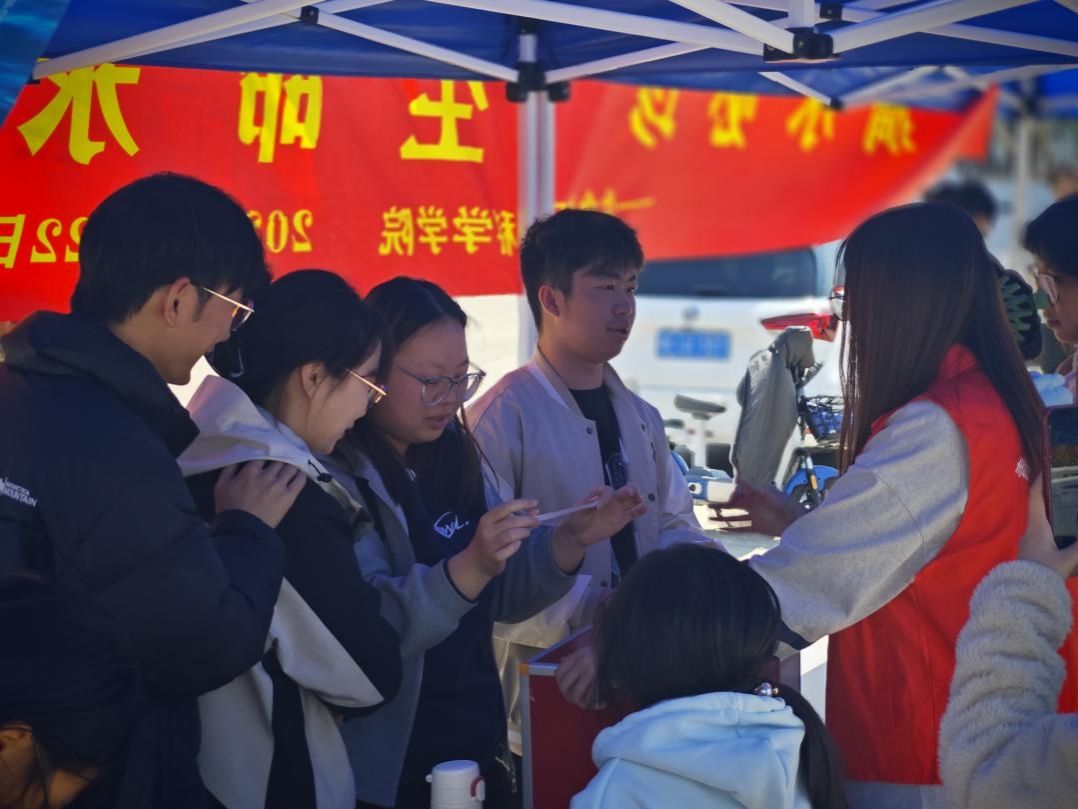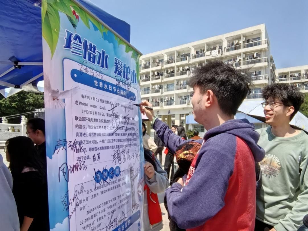 水畔宣讲处,声声入人心。“2025年3月22日是我们的第三十三届世界水日,今年的主题定为Glacier Preservation,译为冰川保护……”宣讲员用通俗易懂的语言讲述着保护水环境问题的重要性,指着现场展示的活动海报,倡导大家共同为改善水环境贡献力量,驻足的师生纷纷在倡议书上签上名字,以表达对水环境保护的支持。