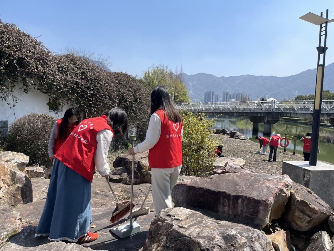 弯腰净校园,行动见真章。与此同时,一抹抹弯腰的红色身影,成为校园里最美的风景。志愿者们手持扫帚、环保袋分组清理绿化带和水域周边的垃圾,以实际行动为校园环境整洁和水资源保护贡献着自己的力量。相关负责老师说:“员工用汗水传递着环保理念,我们在这里呼吁大家共同维护校园的清洁与美丽。”
