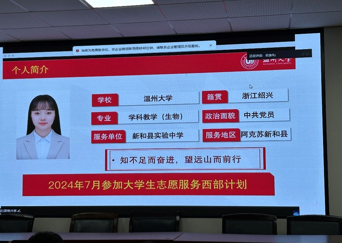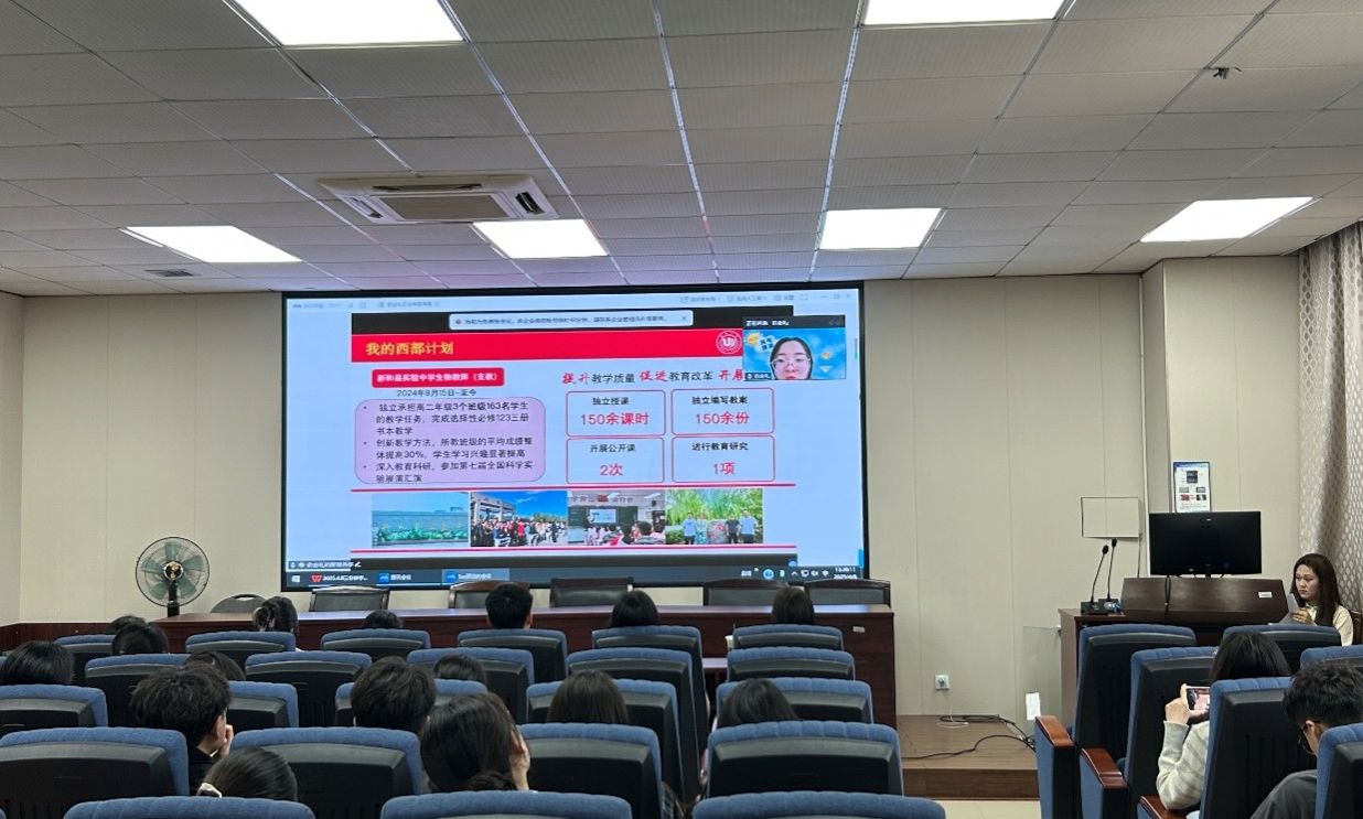 她从个人学习经历及西部计划支教经历出发,聚焦“实践+科研”,探讨如何通过实践与专业相结合,推动个人成长并贡献社会。俞金礼研一时身兼数职,担任研究生助管、党支部宣传委员、班级团支书等职务,做好这些工作的同时还有综测专业第一的好成绩。她结合自身实际,讲述了自己曾经因为受到资助才得以顺利完成学业,到现在积极投身西部计划,成为一名援疆生物教师,从受助者到助人者的希望传承故事。在支教过程中,她根据当地员工的实际情况因材施教,让所教班级的平均成绩提高30%。同时,与老师共同合作的生物教研论文获全国一等奖。她用自身经历告诉我们,要将理想信念与社会责任相结合,成为有理想、有信念的青年先锋,并在实际工作中发挥重要作用。