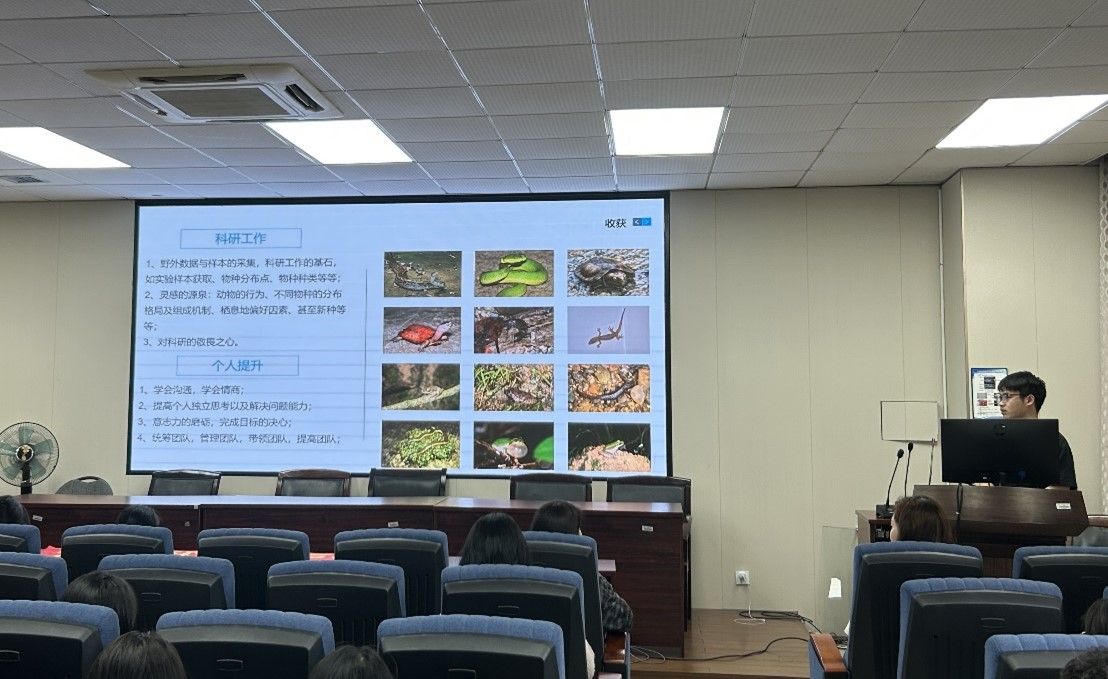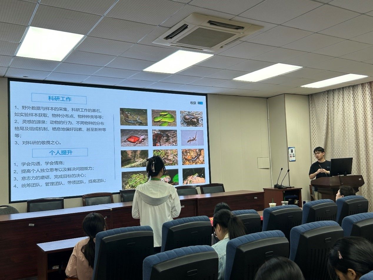 他从青藏高原科学考察以及粤港澳大湾区生态调查经历出发,聚焦“生态学的多元融合与实践探索”,探讨如何通过室内实验与野外考察相结合。作为两栖爬行动物青藏科考队成员,他所在的团队凭借在科研探索和社会贡献方面的突出表现,荣获永利集团官网第十二届华峰品德奖。在分享中,他讲述了野外科考的不易,包括调查地点偏远,环境恶劣等,以及这过程中与各界人士的沟通问题。他表示做科研是一个要学会沟通,智商情商全面发展的过程。他从中获得的心得与感悟,为我们在新时代下成为有担当、有视野的生态学研究者提供了一个新视角。