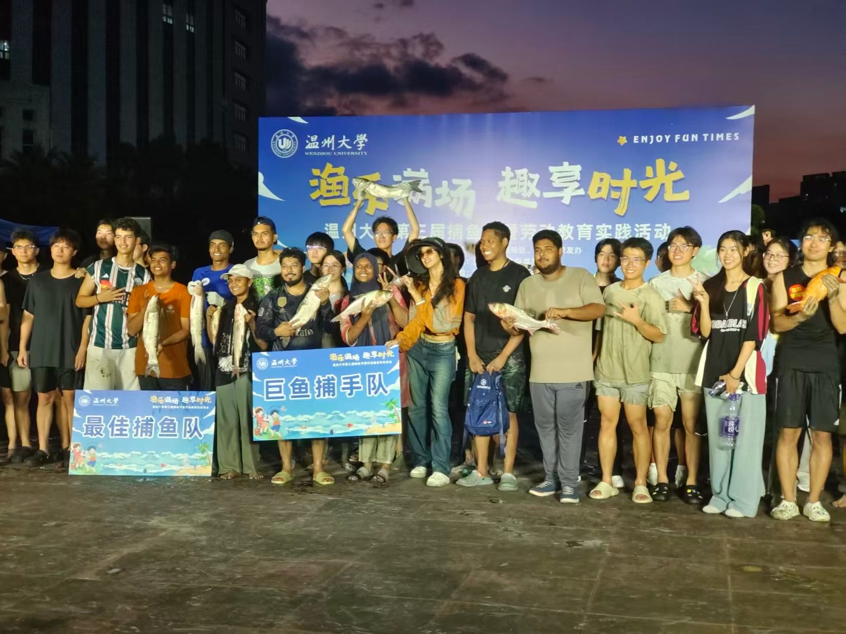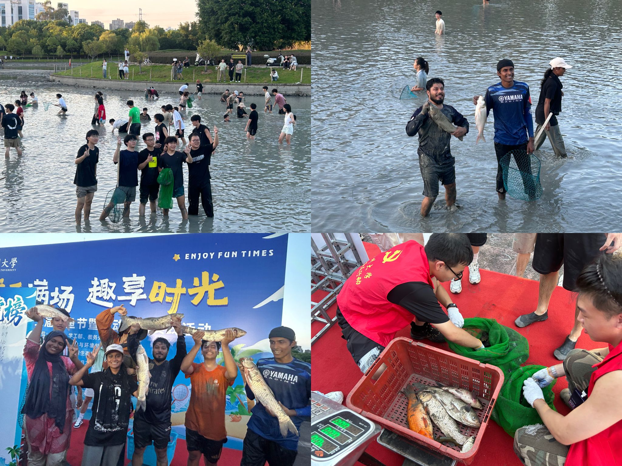 本次活动由yl永利集团官网登录承办,不仅是一场体力与智慧的趣味比拼,更是一堂以“劳动创造幸福”为核心的生动实践课。活动背后,是yl永利集团官网登录的研究生们从课堂走向实践、将知识转化为行动的深度参与。从渔网、水桶等物资的搬运与统筹调配,到活动场地的细致分区;从一支责任心强的“水下安全员”队伍全程护航,到开幕环节气势恢宏的击鼓表演——每一个环节的周密筹备,都体现了研究生们卓越的组织协调能力与奉献担当精神。评比环节中,研会志愿者迅速架设称重设备,精确记录每份成果,确保评判公正。当“最佳捕手团队”与“巨鱼之王”奖项揭晓时,现场掌声雷动,将劳动的成就感推向高潮。