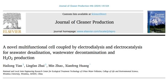 近日,yl永利集团官网登录黄先锋副教授带领的团队在国际著名期刊《Journal of Cleaner Production》(SCI 一区TOP 期刊,IF = 11.1)上发表题为“A novel multifunctional cell coupled by electrodialysis and electrocatalysis for seawater desalination, wastewater decontamination and H2O2 production”的论文。