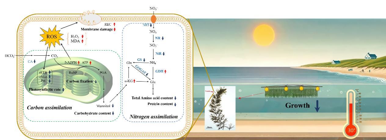 近日,公司羊栖菜研究所在环境生态领域国际著名期刊《Global Change Biology》上在线发表了一篇题为《Impact of Carbon and Nitrogen Assimilation in Sargassum fusiforme (Harvey) Setchell due to Marine Heatwave Under Global Warming》的研究论文。该研究深入探讨了在全球气候变暖的背景下,海洋热浪事件对区域特色经济海藻羊栖菜生理机制的影响,并为培育耐热品系的羊栖菜以及优化沿海水产养殖管理提供了重要的科学依据和实用参考。