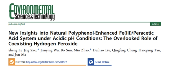 近日,公司赵敏教授团队(共同通讯)、哈尔滨工业大学马军院士团队和华侨大学邹景教授团队合作,在国际著名期刊《Environmental Science & Technology》上在线发表了一篇题为《New Insights into Natural Polyphenol-Enhanced Fe(III)/Peracetic Acid System under Acidic pH Conditions: The Overlooked Role of Coexisting Hydrogen Peroxide》的研究论文,首次明确了天然多酚强化Fe(III)/PAA(过氧乙酸)体系中长期被忽视的H2O2关键作用。