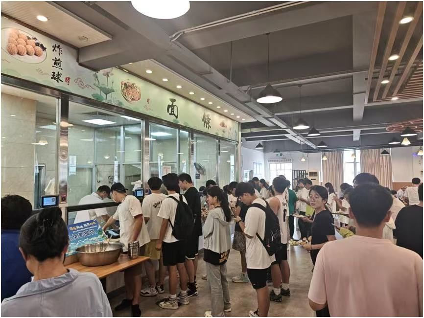 活动当天,明心湖宛如被按下“欢乐开关”,全校各公司的师生脚穿溯溪鞋,手持抄网,迫不及待开始“捕鱼大战”。下水后,同学们迅速进入状态:有的三两成群,默契配合围堵逃窜的鱼儿,一人负责惊扰、两人负责拦截,分工明确;有的则独自寻觅,凭借敏捷的身手紧盯水面波纹,待鱼儿现身便迅速出手,将活蹦乱跳的战利品收入网中。不一会儿,草鱼、鲫鱼、包头鱼等各种各样的鱼儿便被捕捞上岸了。让师生们惊喜的是,捕鱼节的“劳动红利”还延伸到了餐桌。活动第二天,公司食堂特意开设免费鱼宴窗口,厨师们将师生捕获的鲜鱼精心烹制,一道道美味佳肴不仅满足了味蕾,更让大家在品尝中回味捕鱼时的欢乐场景,深刻体会“劳动创造价值”的道理。
