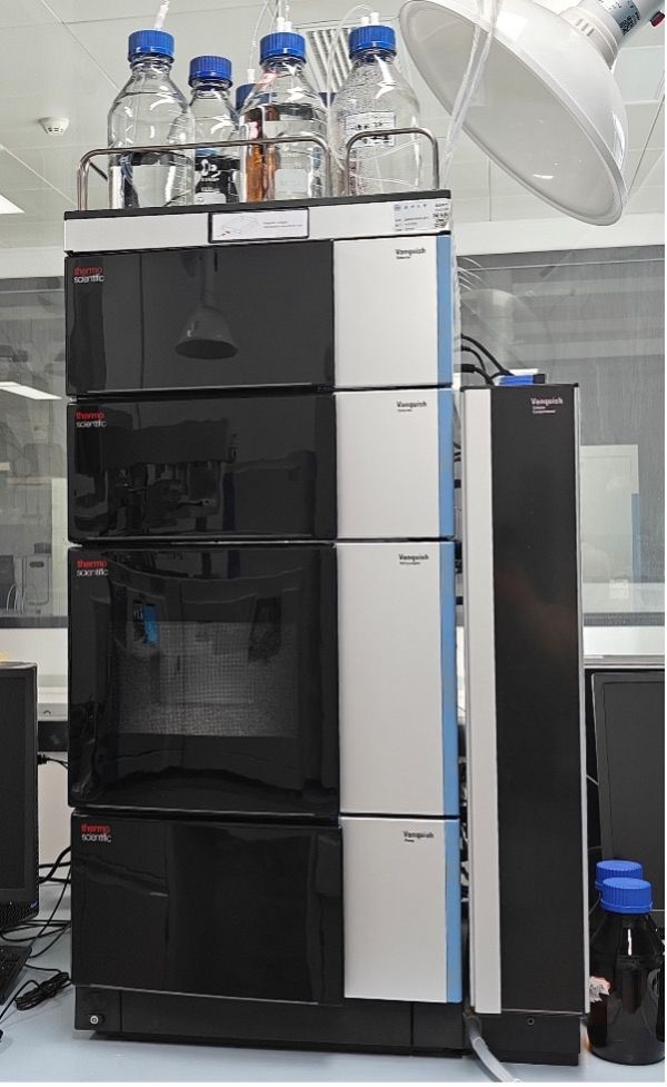 Thermo Vanquish Duo是模块化超高效液相色谱系统,集成了两套独立的输液单元(如二元高压泵VF-P32-A)、进样器、柱温箱及一个耐高压的自动切换阀,通过软件将两维分离在线耦合。主要面向需要高分辨率的领域,如生物制药中蛋白质组学/宿主细胞蛋白分析、天然产物全表征、复杂聚合物解析以及食品和环境中痕量杂质鉴定。