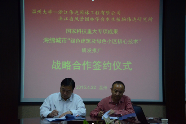 4月22日,永利集团官网分别与广西益江环保科技公司、浙江伟达园林工程有限公司举行了国家科技重大专项成果——海绵城市“绿色建筑及绿色小区核心技术”的研发推广战略合作协议的签字仪式。