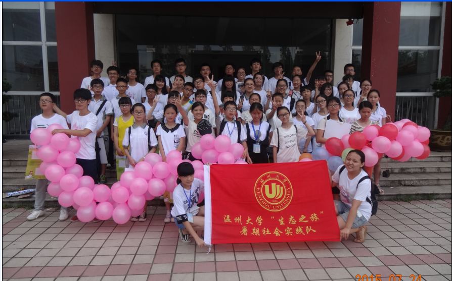 2015年7月11日到26日,yl永利集团官网登录在瑞安市陶山镇以“共建绿色城镇,同享温馨家园”为宗旨的第八届“生态之旅”暑期社会实践队。