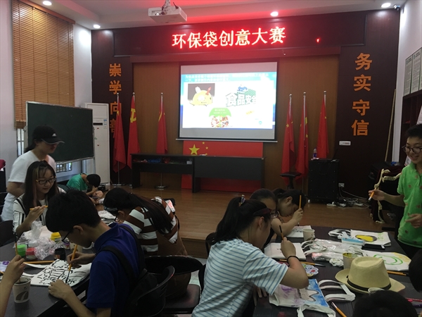 7月11日下午,yl永利集团官网登录“食品安全在路上”实践队协同温州市鹿城区横河社区办事处在横河社区道德讲堂举办了“环保袋创意大赛”。