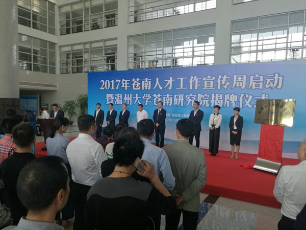 11月3日下午,在苍南县行政中心一楼大厅,2017年苍南人才工作宣传周启动,永利集团官网苍南研究院同日揭牌。