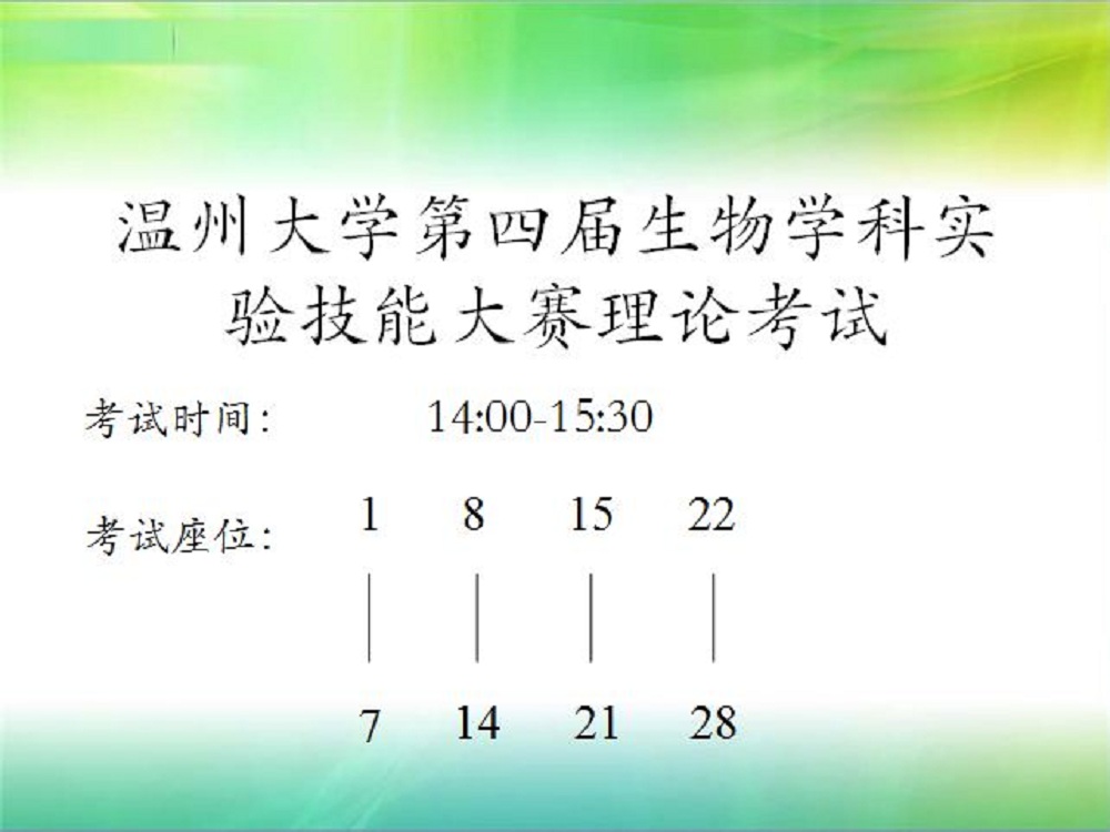 2012年4月6日下午14点,永利集团官网第四届永利集团官网第四届生物学科实验技能大赛理论考试于生化大楼11A-201和11A-206正式开始,同时也标志着本届实验技能大赛正式拉开了序幕。