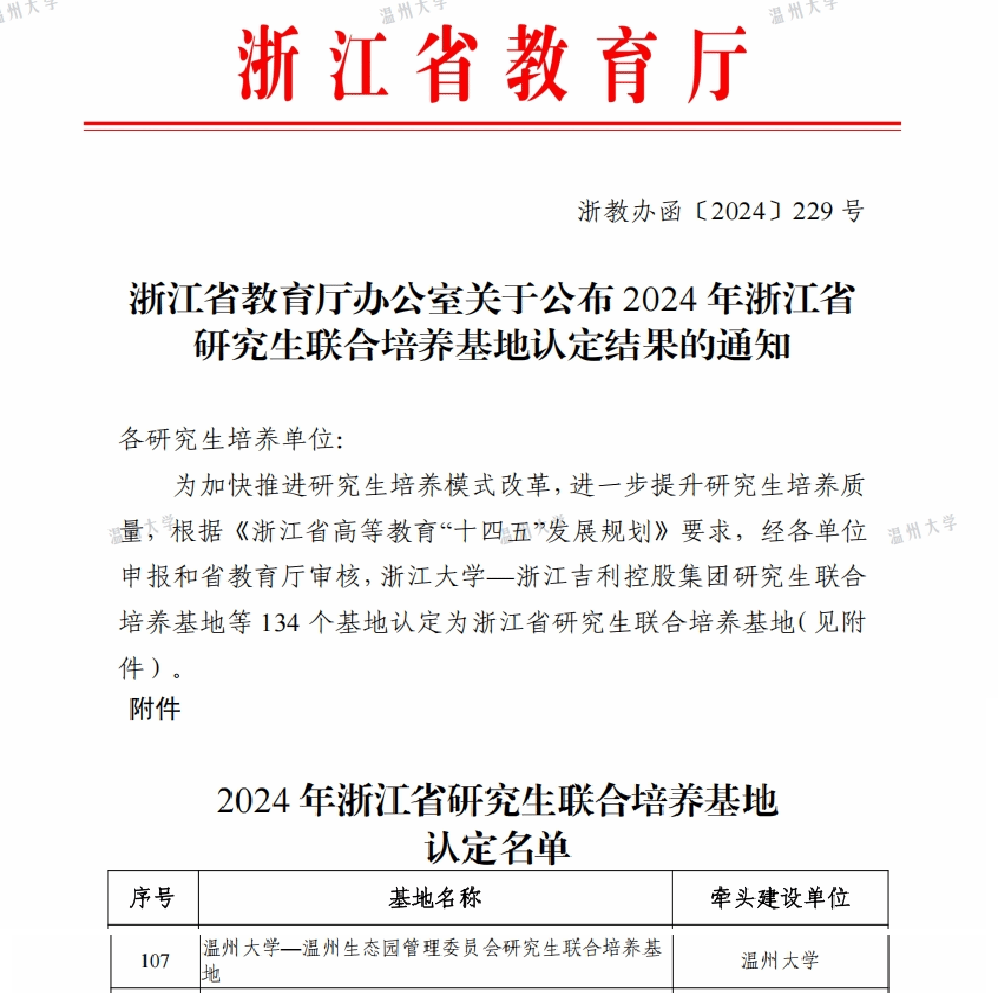 近日,浙江省教育厅正式公布了2024年度浙江省研究生联合培养基地的认定结果,永利集团官网与温州生态园管理委员会携手共建的研究生联合培养基地成功入选。此次认定是对公司在研究生联合培养工作上所取得成绩的高度肯定。构建生态文明人才培养高地永利集团官网-温州生态园管理委员会研究生联合培养基地聚焦三垟湿地的环境治理、生态保护及可持续发展,秉持“校内培养与基地实践相结合”的原则,积极整合双方优势资源。基地以环保产业的实际需求为导向,...