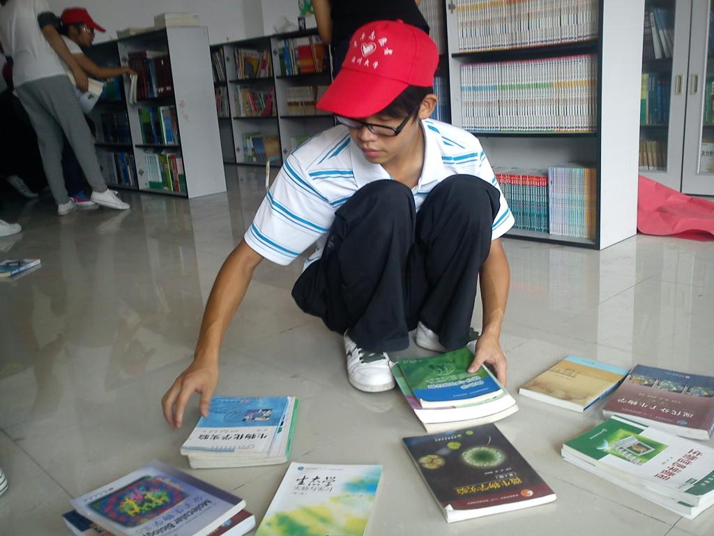 2012年10月10日星期三,永利集团官网“生命曙光”青年志愿者社的大一新成员们在王毅学长的带领下整理了“生命之家”图书馆。