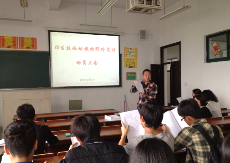 2013年5月3日中午12点30分,12生技班全班同学在11A201召开动植物野外实习动员大会,为接下来为期一周的实习做好准备工作。